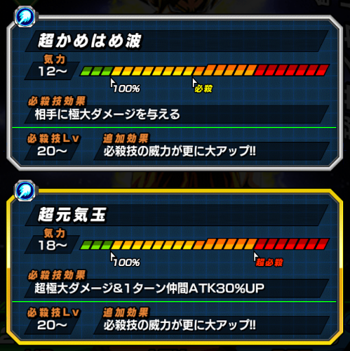 【ドッカンバトル】必殺技レベル別の威力と種類