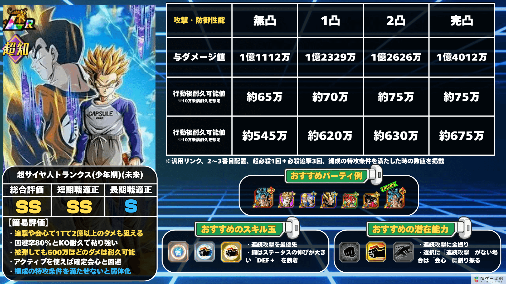 | 超サイヤ人トランクス(少年期)(未来)の簡易評価まとめ |