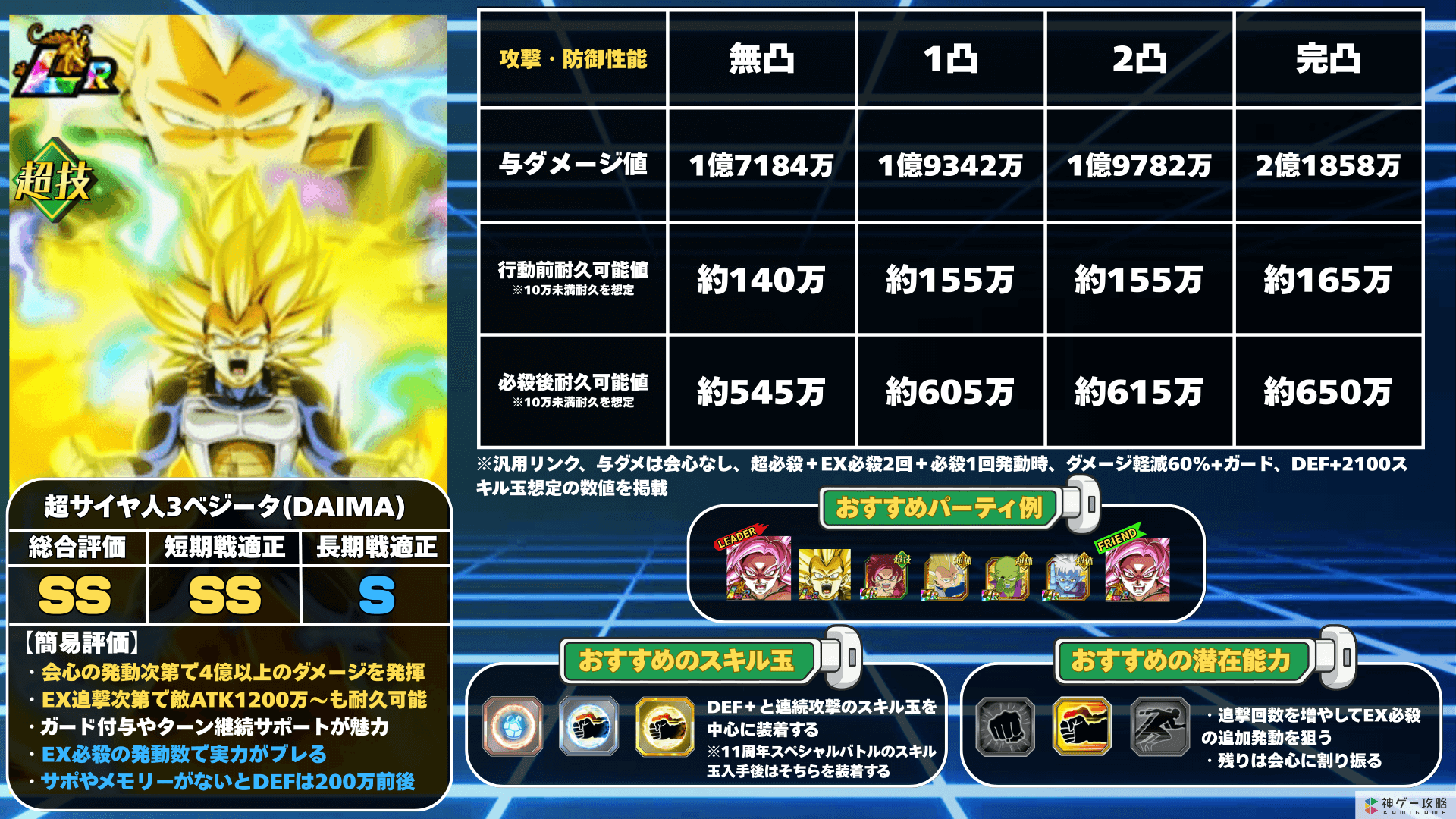 超サイヤ人3ベジータ(DAIMA)のスキルとステータス