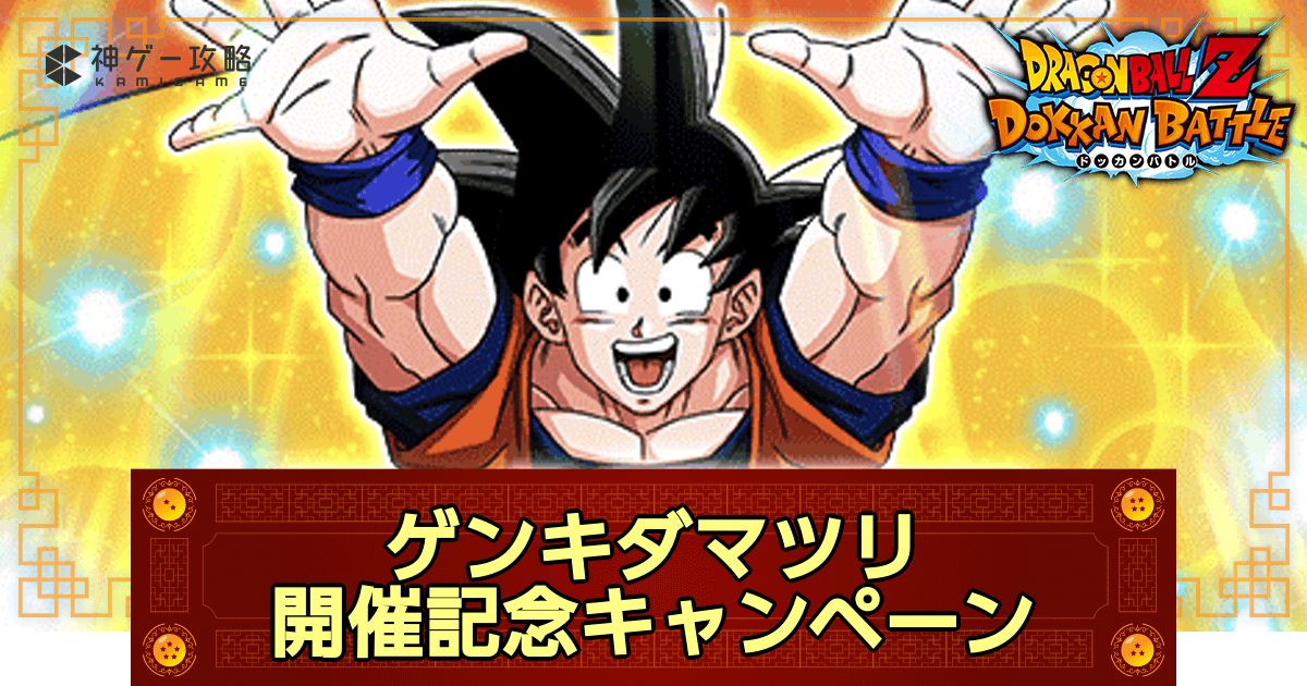 ドッカンバトル(ドカバト)の「ゲンキダマツリ開催記念キャンペーン」の開催イベントやミッション情報を掲載。チャレンジイベント「最強奥義!元気玉で勝利をつかめ!」や秘宝「みんなの元気玉」の情報も掲載しているため、キャンペーンの情報を知りたい人は参考にどうぞ。