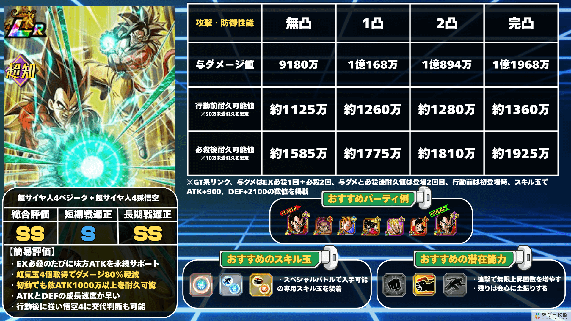 超サイヤ人4ベジータ+超サイヤ人4孫悟空のスキルとステータス