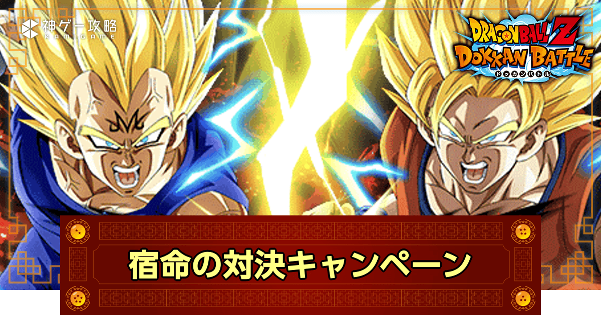 ドッカンバトル(ドカバト)の「宿命の対決キャンペーン」の開催イベントや参加方法を掲載。秘宝「宿命の対決キャンペーン」 挑戦券や開催イベント「宿命の対決 vs孫悟空」「宿命の対決 vsベジータ」も掲載しているため、キャンペーンの情報を知りたい人は参考にどうぞ。