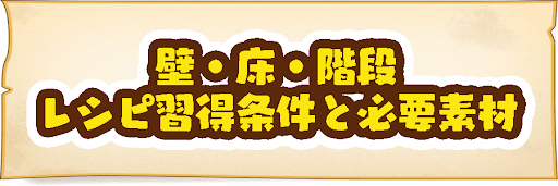 壁・床・階段のレシピ習得条件と必要素材