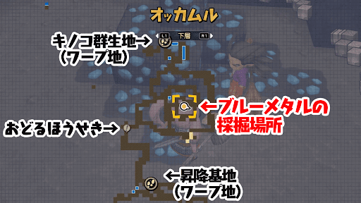 └見つからない場合は上下方向にも気を配ろう - ブルーメタルを見つけたら掘って入手する