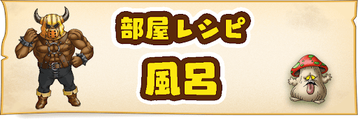 ビルダーズ2(DQB2)の『風呂』の部屋レシピを一覧でまとめています。風呂の部屋レシピ一覧、風呂の効果、必要な素材、図鑑No.も掲載しているので、『風呂』を作る際の参考にお役立てください。