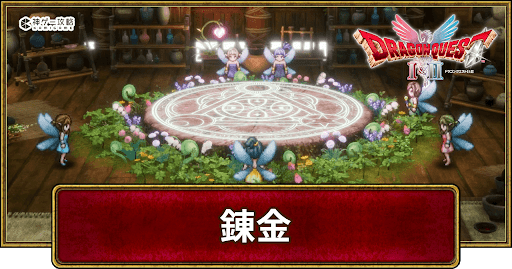ドラクエ1リメイク(DQ1HD2Dリマスター)の「錬金」を解説。ドラゴンクエスト1の紋章錬金とアイテム錬金の解放条件や作れるアイテム、錬金素材の入手方法や錬金を行うメリットについても掲載しています。