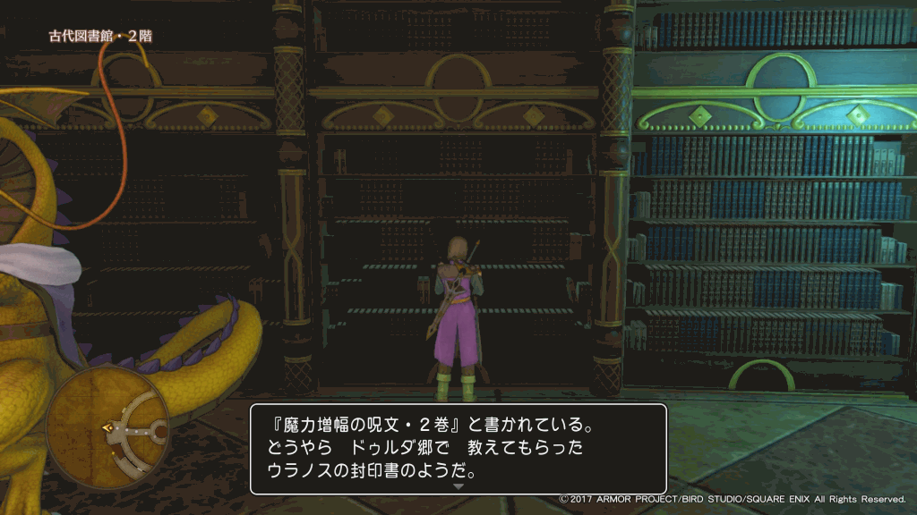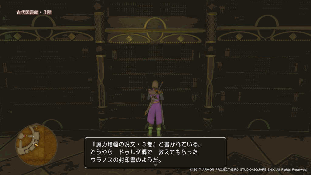 「ウラノスの大秘法」を攻略するには、「魔力増幅の呪文」全3巻を探す必要がある。「魔力増幅の呪文」は古代図書館の本棚にある。