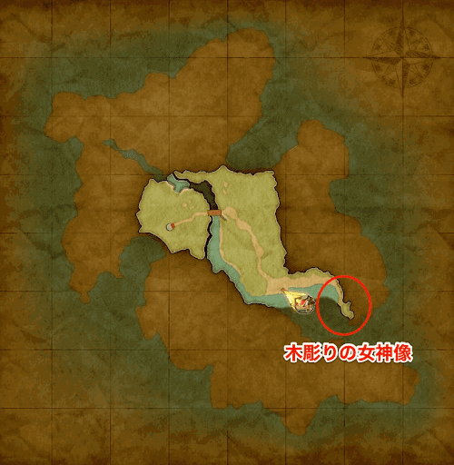 マップ赤丸の場所で「木彫りの女神像」を回収 |