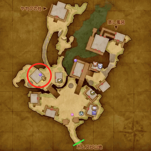 ホムスビ山地の赤丸で示した採掘場所から「てっこうせき」を入手 |
