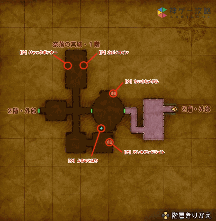 | 勇者の試練(奈落の名城)のマップ(階層を選択) | ||||