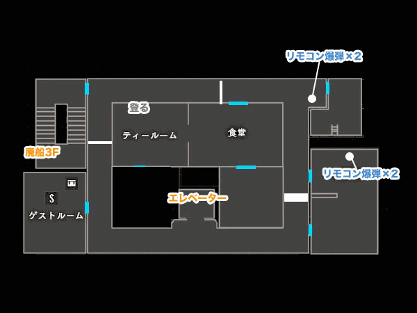 | 2 | シャッターが下りて通行できないため、迂回して中央の部屋へ向かう |