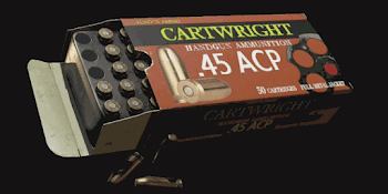 | 解説 | 大型拳銃用.45ACP弾。M19及びクイックドロウアーミーで使用。弾頭重量が重く、通常のハンドガンの弾に比べて威力が高い。 |