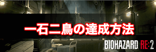 バイオハザードRE2(バイオRE2)のレコード「一石二鳥」の情報を掲載。簡単に達成するための手順を画像を混じえて解説しているため、レコード達成の参考にしてほしい。