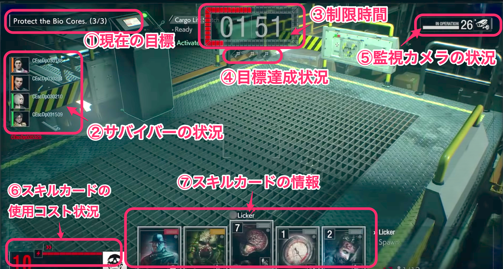 『バイオハザードRE3(バイオRE3)』レジスタンスレジスタンスの画面の見方と解説を掲載!サバイバー・ますアターマインド・クリーチャー操作時(スレイブ化)別に紹介しているので、バイオハザードレジスタンスを攻略する際の参考にどうぞ!