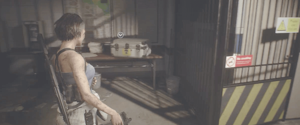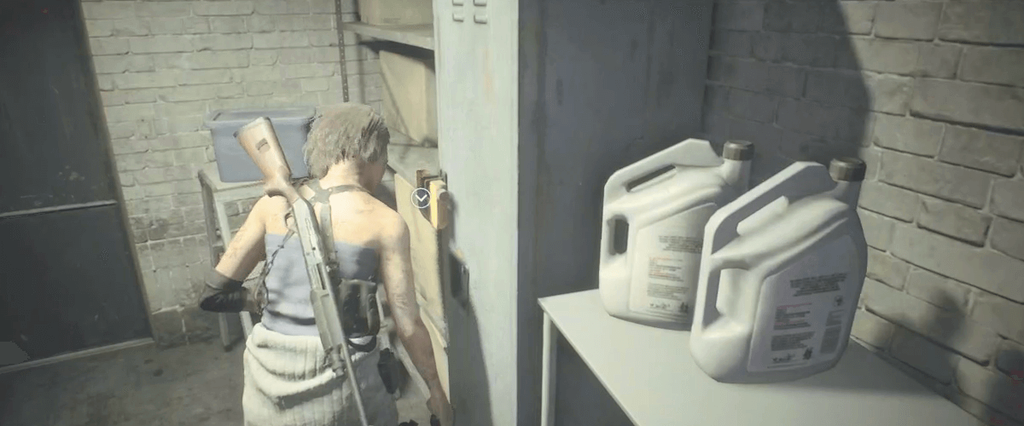 「バイオRE3」のロッカーは、南京錠でロックされている。ロッカーにはグレネードランチャーの弾薬や救急スプレーなど、貴重なアイテムが入っている。
