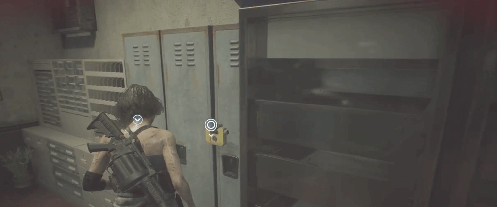 南京錠の付いているロッカーは、キーピックを所持しているジルのみ開けられる。カルロス編では開けられないので、ジルに操作出来るようになってから訪れよう。