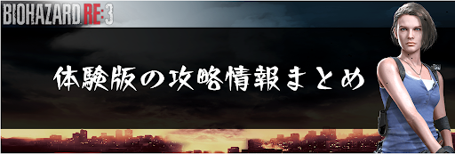 バイオハザードRE3(バイオRE3)の体験版の攻略情報を掲載!体験版でできることをはじめ、攻略チャートやチャーリー君人形の場所を一覧にして掲載しているため、バイオRE3の攻略をする際の参考にどうぞ。