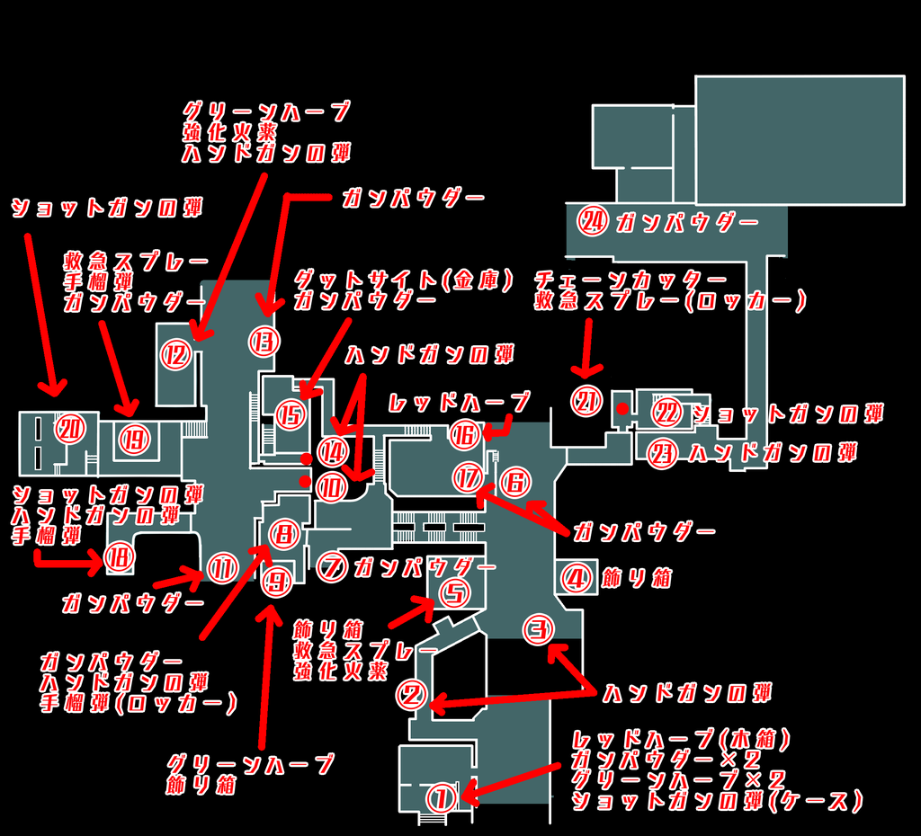 手榴弾は、ストーリー攻略で訪れる様々なマップで入手できる。手榴弾を使えば、ネメシスやハンターβを1撃で倒せるため、雑魚ゾンビには使わずに強力なクリーチャー戦までとっておくのがおすすめだ。