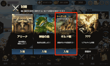 | 1 | ゲーム画面の「ギルド戦」を選択する | |