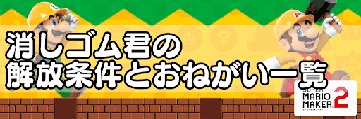 【マリオメーカー2】消しゴム君の解放条件とおねがいの一覧