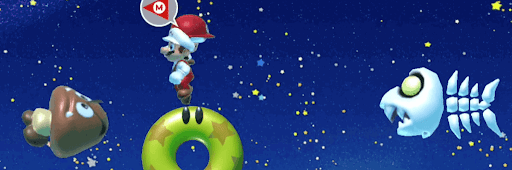 「キノピオとランデブー」は夜の空ステージで構成されており、通常のステージとはマリオたちの挙動が異なるため、特徴を掴む必要がある。