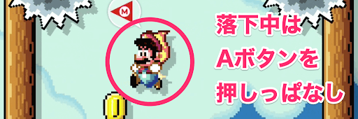 Aボタンを押し続けてゆっくり落下する