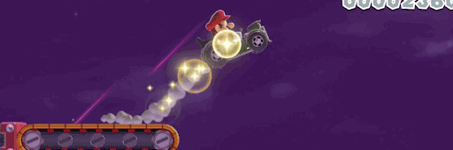 ファイアメガブロスに当たる直前に左スティックを左に倒そう。当たった直後だと、奥にいるドッスンに踏み潰される。