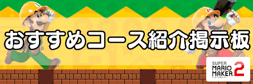 マリオメーカー2のおすすめコース・ステージ紹介掲示板です。「世界のコース」でプレイし、面白かったステージを他のプレーヤーに紹介する場所としてぜひご活用ください。