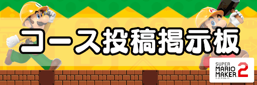 マリオメーカー2のコース・ステージ投稿掲示板です。ご自身で作成したコースを投稿したり、他ユーザー様が作ったコースを遊ぶ際にぜひご活用ください。