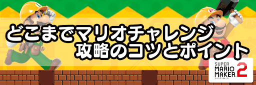 マリオメーカー2(スーパーマリオメーカー2)の「どこまでマリオチャレンジ」について解説。どこまでマリオチャレンジの概要をはじめ、どこまでマリオチャレンジを攻略するコツや、世界ランク上位を目指すポイントも解説しているため、マリオメーカー2を攻略する際の参考にしてほしい。