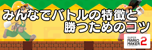 マリオメーカー2のバトルモードの「みんなでバトル」の情報を掲載。みんなでバトルの特徴や、バトルレートを上げるためにバトルで勝つためのコツを紹介しているため、マリオメーカー2を遊ぶ際の参考にしてほしい。