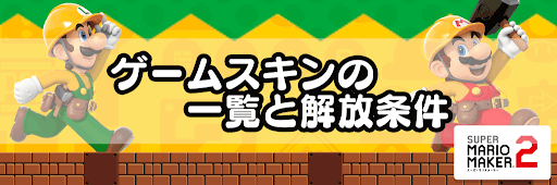 マリオメーカー2(スーパーマリオメーカー2)のゲームスキンを一覧で掲載。ゲームスキンの一覧と特徴をはじめ、解放条件、新たに登場したゲームスキンについても解説しているため、マリオメーカー2を攻略する際の参考にしてほしい。