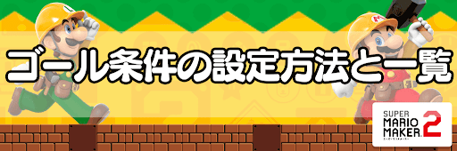 マリオメーカー2(スーパーマリオメーカー2)における、「ゴール条件」の情報を掲載。ステージクリアの条件を設定する方法やゴール条件一覧を紹介しているので、マリオメーカー2のコース作成をする際の参考にしてほしい。