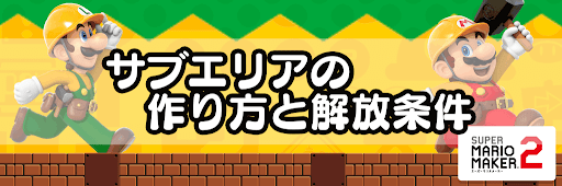 マリオメーカー2(スーパーマリオメーカー2)のサブエリアについて解説。サブエリアの作り方をはじめ、サブエリアの解放条件、土管やドアの配置についても解説しているので、マリオメーカー2を攻略する際の参考にしてほしい。