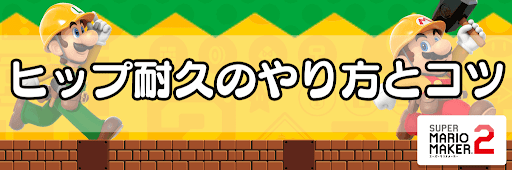 マリオメーカー2の「ヒップ耐久」の情報を掲載。ヒップ耐久のやり方やコツをはじめ、ヒップ耐久をやるメリットや練習コースの紹介をしているため、マリオメーカー2を遊ぶ際の参考にしてほしい。