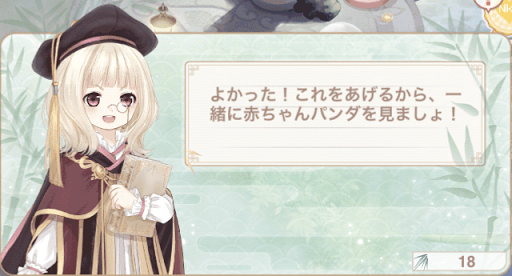 イベント「パンダの笹探し」では、稀にデーヴィーが登場する。優先すべきはセットコーデの入手だが、もし「美味しい笹」が余ってしまったら、デーヴィーに渡してしまおう。