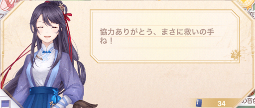 クエストクリア時に、一定の確率で越千霜が登場する。「楽譜の写し」を渡すとスターコインやダイヤが貰えるので、余裕があれば渡してみよう。