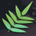 まだ生気の残る葉。素材として利用できる。水分を含んでおり、絞ると緑色の汁が採取できる。 |