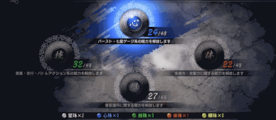 星珠と輝珠の2種は、心珠、技珠、体珠の3種と比べると入手できる数が少なく、星珠は一部の能力解放に必須になる。したがって、自身の解放したい能力に合わせて使うと良い。