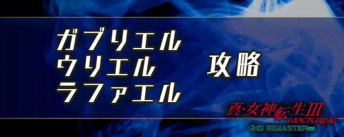 女神転生3リマスター(メガテン3リマスター)における「大天使3体(ガブリエル/ウリエル/ラファエル)」の攻略情報を掲載!ボス「大天使3体」の耐性や攻略のコツ、おすすめの編成例も記載しているので、女神転生3リマスターを攻略する際の参考にどうぞ。