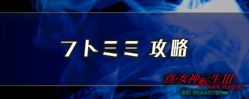 女神転生3(メガテン3)のボス「フトミミ」について解説。女神転生3のボスの耐性や攻略のコツ、おすすめの編成例、敵ステータスについても掲載しているため、真女神転生3ノクターンリマスターをプレイする際の参考にどうぞ。