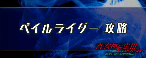 女神転生3リマスター(メガテン3リマスター)における「ペイルライダー」の攻略情報を掲載!ボス「ペイルライダー」の耐性や攻略のコツ、おすすめの編成例も記載しているので、女神転生3リマスターを攻略する際の参考にどうぞ。