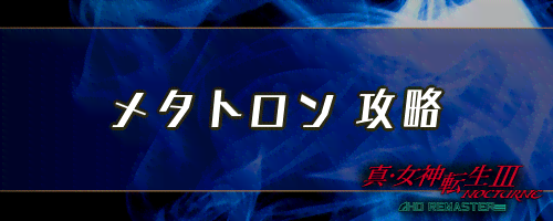 女神転生3(メガテン3)のボス「メタトロン」について解説。女神転生3のボスの耐性や攻略のコツ、おすすめの編成例、敵ステータスについても掲載しているため、真女神転生3ノクターンリマスターをプレイする際の参考にどうぞ。
