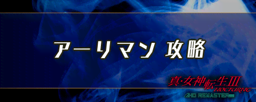 女神転生3(メガテン3)のボス「アーリマン」について解説。女神転生3のボスの耐性や攻略のコツ、おすすめの編成例、敵ステータスについても掲載しているため、真女神転生3ノクターンリマスターをプレイする際の参考にどうぞ。