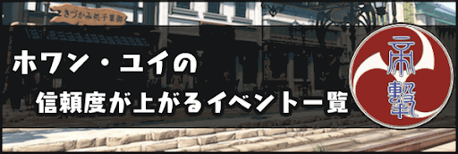 『新サクラ大戦』に登場する上海華撃団の隊員であるホワン・ユイの信頼度(好感度)が上がるイベントについて掲載!メインストーリーとサブイベントでユイの好感度が上がるイベントを一覧にして紹介しているため、トロフィーコンプを目的とした攻略の参考にどうぞ!