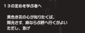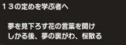 | 13の定めを学ぶ者へ | ・花組十三箇条のイベント発生場所 |