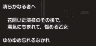 | 清らかなる者へ | ・お風呂などのイベント発生場所 ・信頼度の下がらない選択肢 |