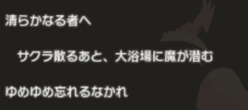 | すべて、水に流して | 大浴場前 |