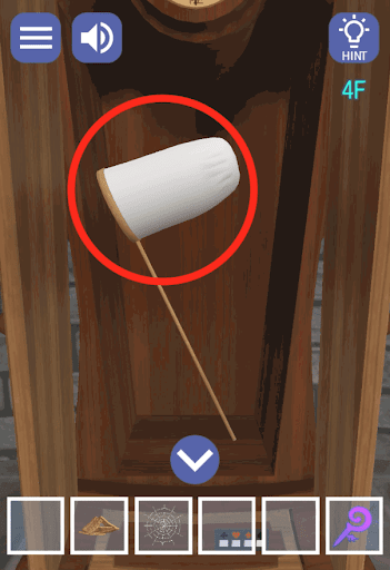 部屋の中を飛んでいる金色の鍵に「捕虫網」を使用する。「鍵(金)」を入手して、目が付いている扉を拡大する。