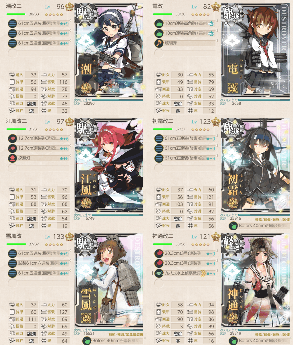 | 削りの間は潮は対潜・探照灯を装備して夜戦補助 |